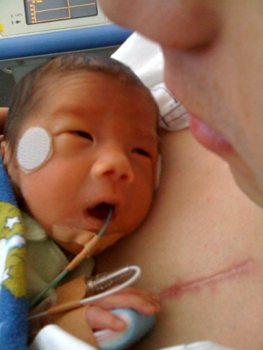 He is still being nourished via IV but just today he is tolerating mothers milk and within a few days should be transferred back to a special care unit a bit closer to home for us.:)